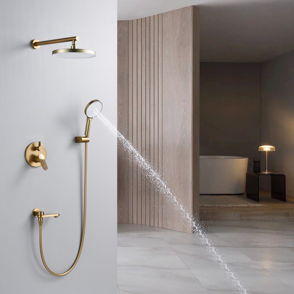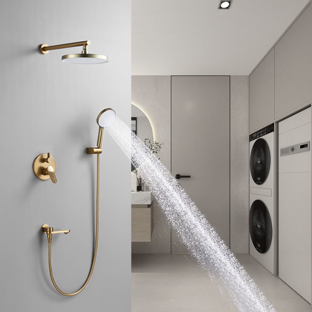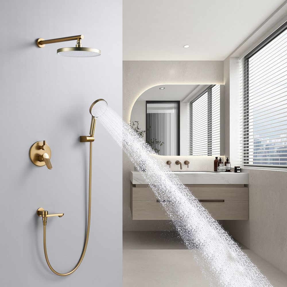 смеситель, встраиваемая часть, шланговое подключение с изливом, верхний душ с настенным кронштейном, душевой шланг, душевая лейка, настенный держатель лейки |