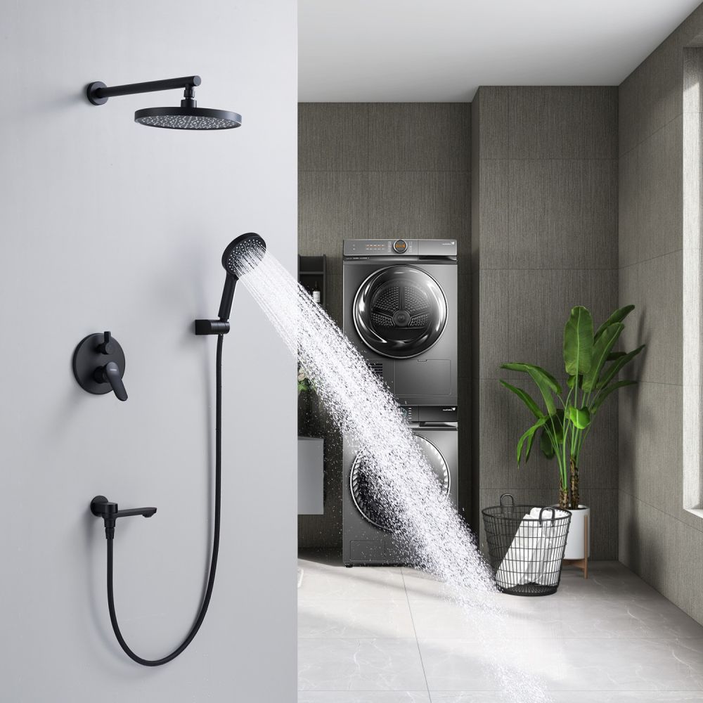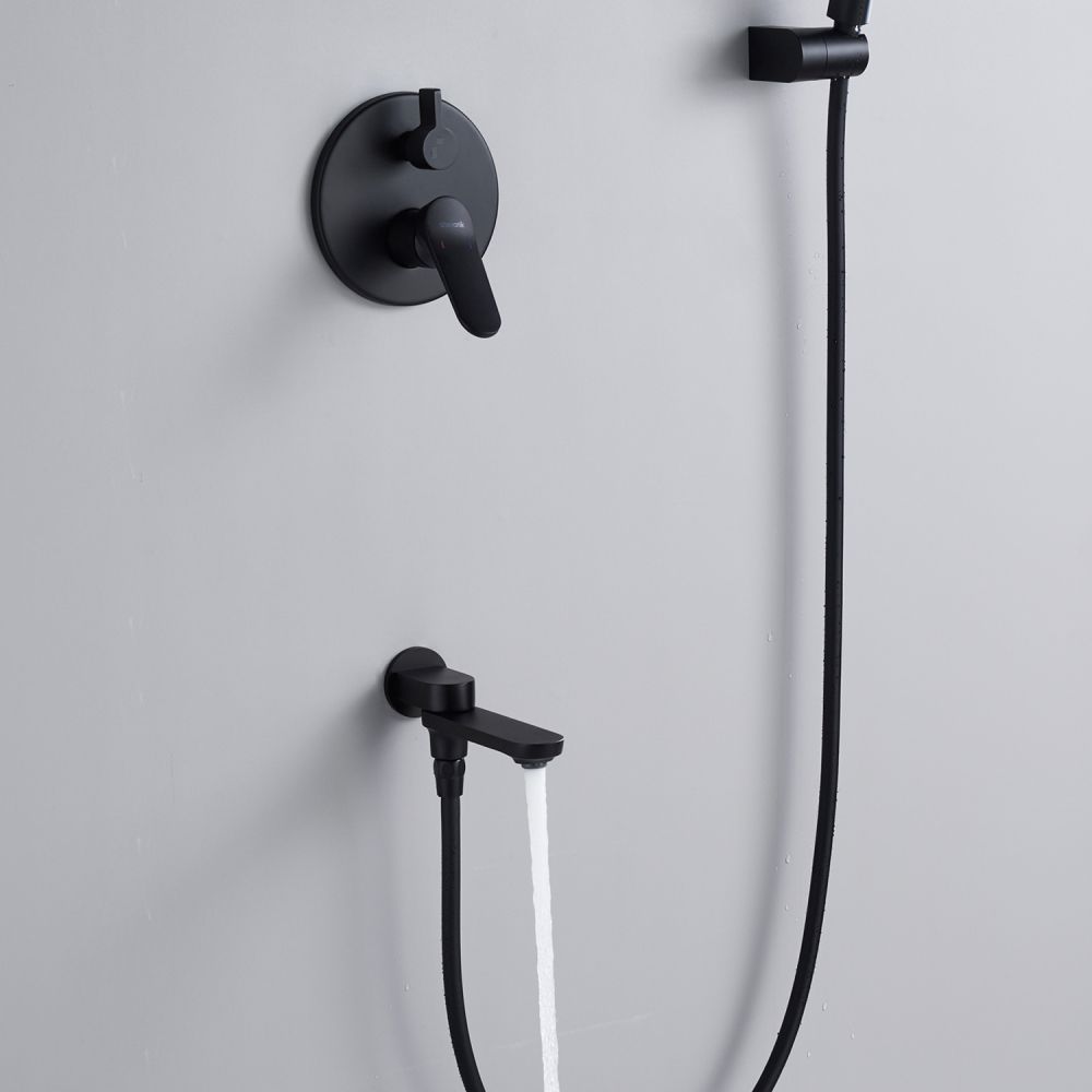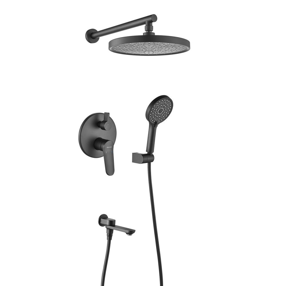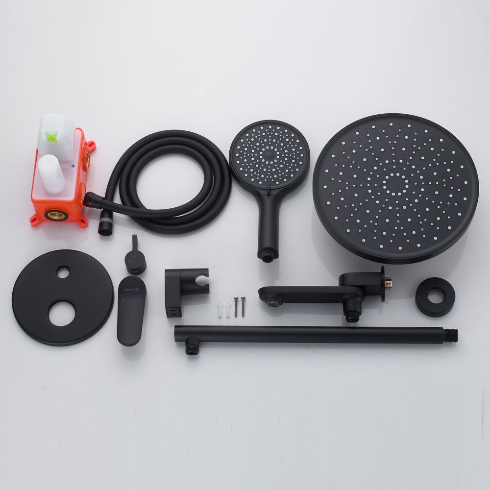 смеситель, встраиваемая часть, шланговое подключение с изливом, верхний душ с настенным кронштейном, душевой шланг, душевая лейка, настенный держатель лейки |