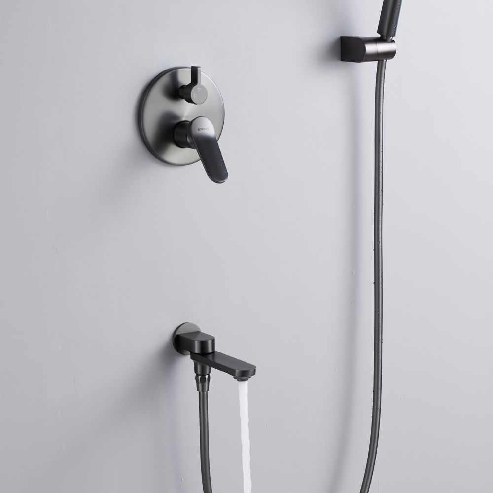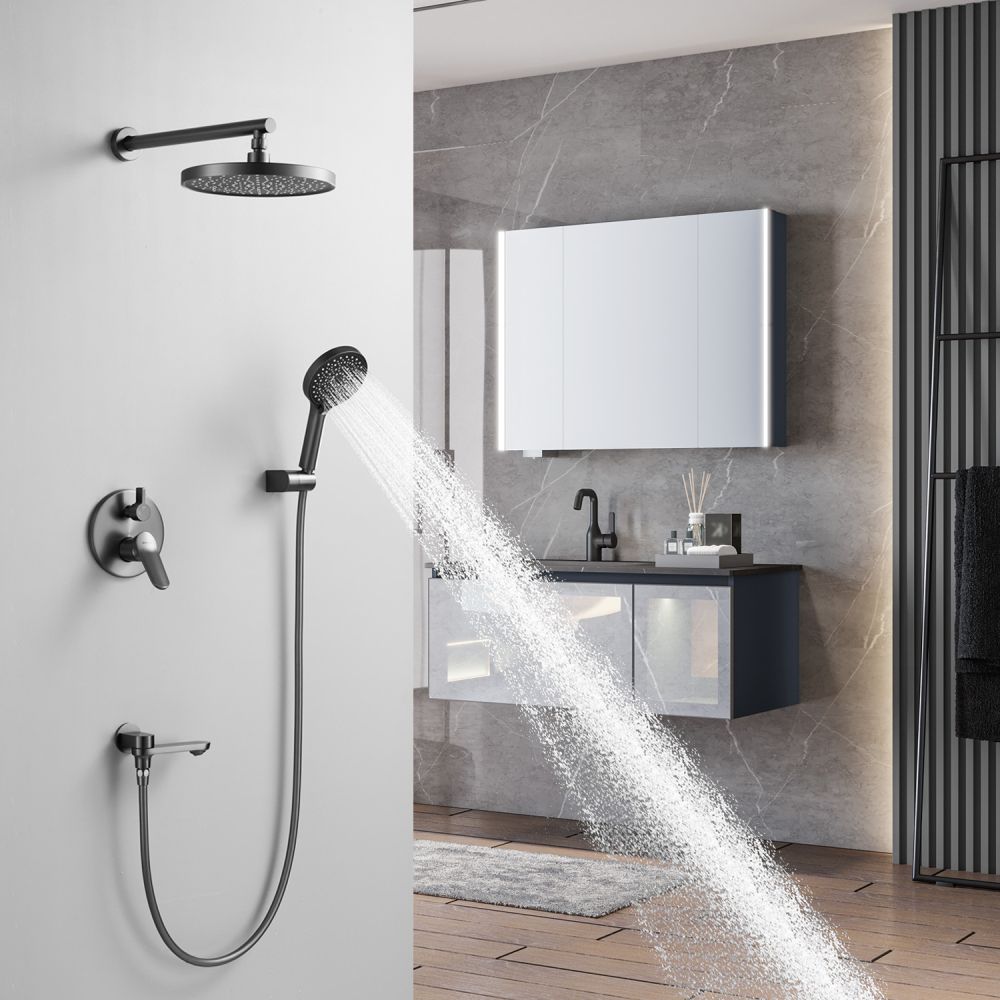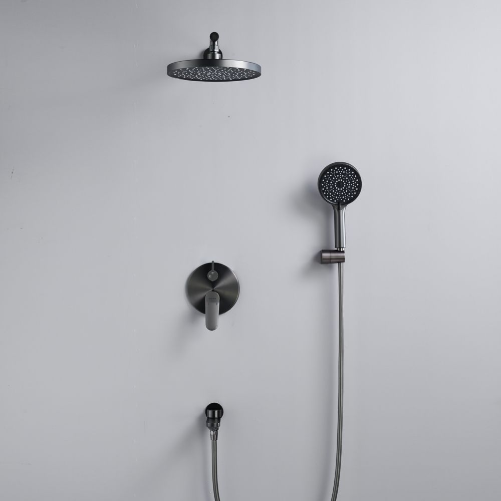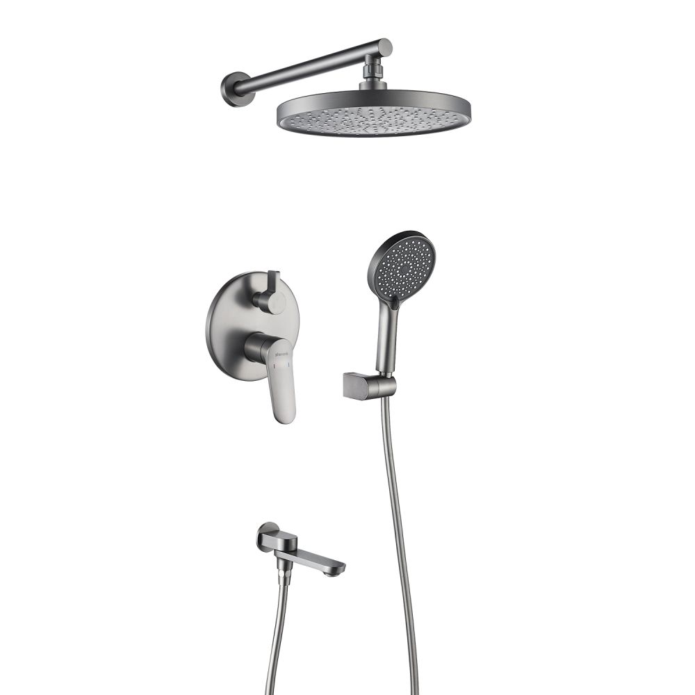 смеситель, встраиваемая часть, шланговое подключение с изливом, верхний душ с настенным кронштейном, душевой шланг, душевая лейка, настенный держатель лейки |