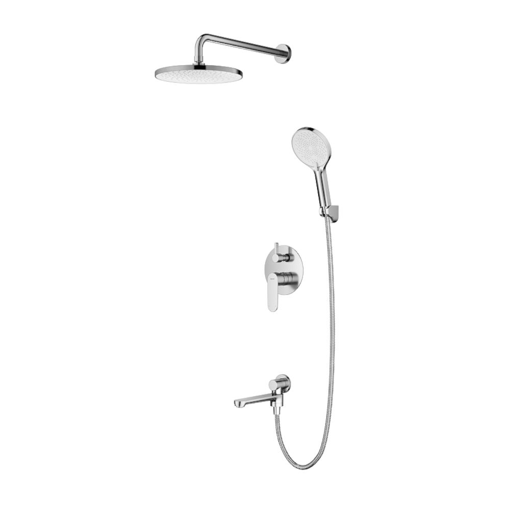 смеситель, внутренняя часть, шланговое подключение с держателем лейки, душевой шланг, верхний душ с кронштейном, излив |