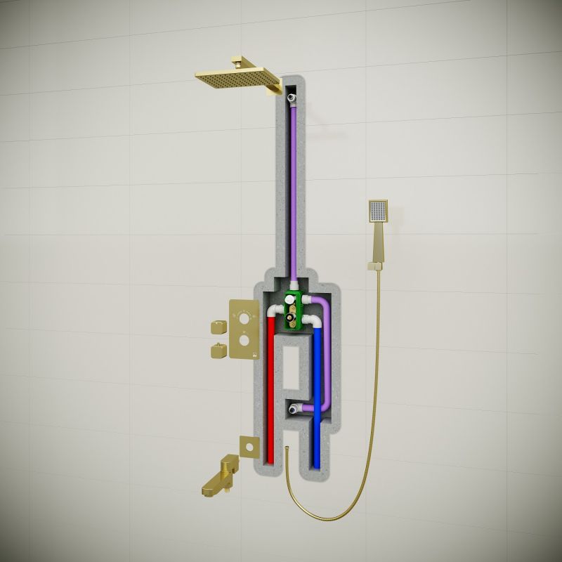 Душевая система с термостатом Timo Petruma 5049 относится к премиальному сегменту, предназначена для монтажа в полой или твердой стене. Термостатический картридж поддерживает стабильную температуру воды, обеспечивая максимально комфортные условия для принятия водных процедур. Основные преимущества встроенной системы: элегантный внешний вид, все коммуникации и крепления спрятаны в стену снаружи видны только декоративные элементы. Установить встроенную систему можно в любом месте. Использовать такой смеситель очень удобно, регулировка температуры воды осуществляется ручкой термостата (расположена снизу). Включение режима "тропический душ" и увеличение напора осуществляется поворотом ручки дивертора (расположена сверху) влево. Регулируя напор воды в режиме "тропический душ" можно получить массажное воздействие различной интенсивности. Для переключения в режим "излив" верните ручку дивертора в исходное положение 12:00 (смеситель выключен), а затем поверните вправо. Увеличение напора воды осуществляется поворотом ручки вправо. Для включения режима "ручной душ" поверните излив к стене. Сложностей монтажа не возникает при установке элементов душевой системы опытным сантехником. Внимательно изучите инструкцию по монтажу и эксплуатации.