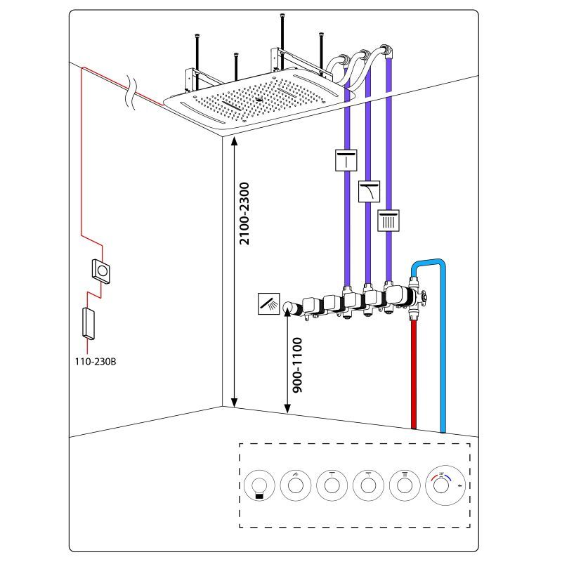 Встраиваемая душевая система с термостатом Timo Saona 2319 относится к премиальному сегменту, предназначена для монтажа в полой или твердой стене. Термостатический картридж поддерживает стабильную температуру воды, обеспечивая максимально комфортные условия для принятия водных процедур. Встроенный потолочный душ большого размера создает имитацию проливного дождя, вода обливает человека целиком. Регулируя напор воды можно получить массажное воздействие, что очень полезно для здоровья. Основные преимущества встроенной системы: элегантный внешний вид, все коммуникации и крепления спрятаны в стену и потолок, снаружи видны только декоративные элементы. Установить встроенную систему можно в любом месте. Сложностей монтажа не возникает при установке элементов душевой системы опытным сантехником. Внимательно изучите инструкцию по монтажу и эксплуатации.