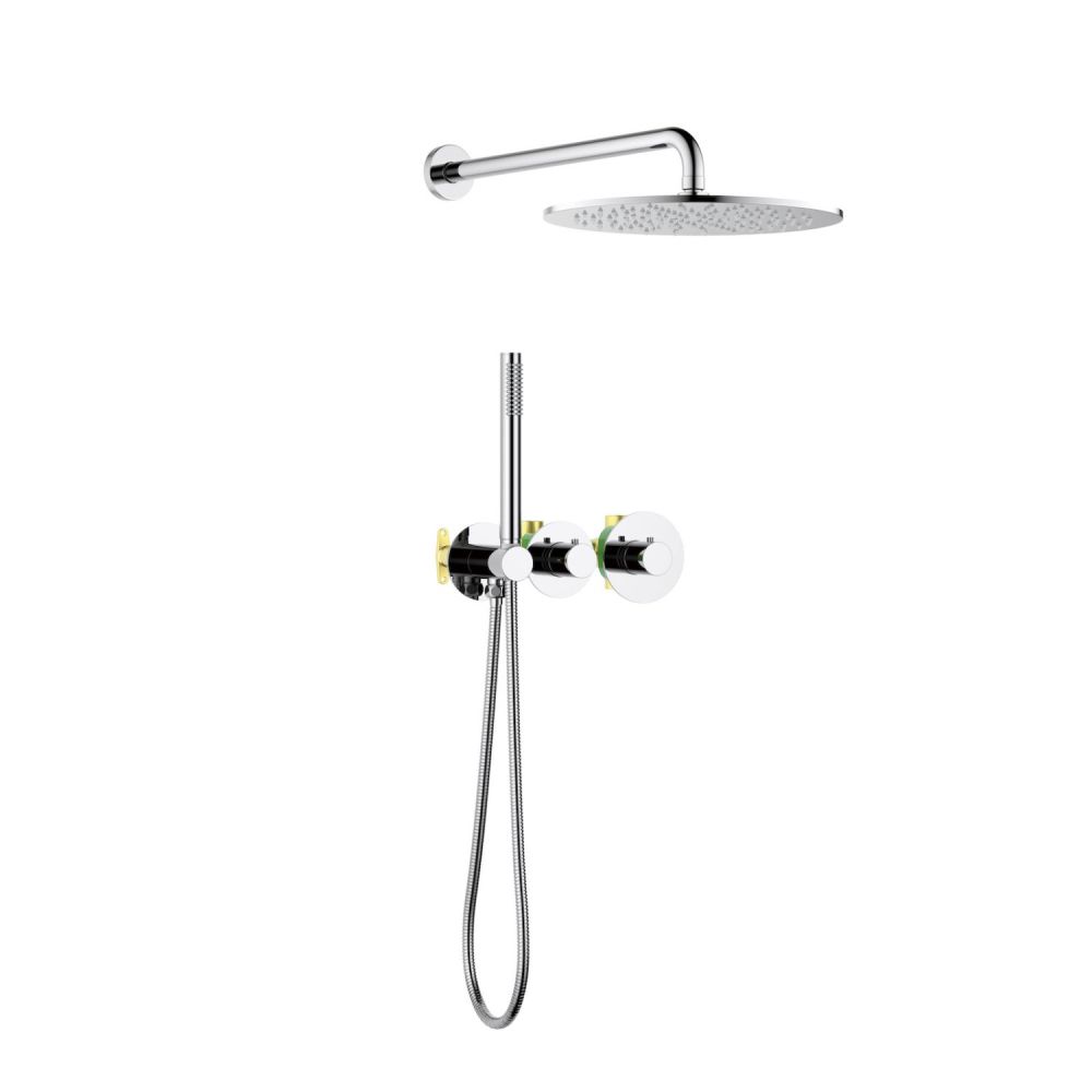 Встраиваемая душевая система с термостатом Timo Saona 2359 относится к премиальному сегменту, предназначена для монтажа в полой или твердой стене. Термостатический картридж поддерживает стабильную температуру воды, обеспечивая максимально комфортные условия для принятия водных процедур. Верхний душ создает имитацию проливного дождя, вода обливает человека целиком. Регулируя напор воды можно получить массажное воздействие, что очень полезно для здоровья. Основные преимущества встроенной системы: элегантный внешний вид, все коммуникации и крепления спрятаны в стену и потолок, снаружи видны только декоративные элементы. Установить встроенную систему можно в любом месте. Сложностей монтажа не возникает при установке элементов душевой системы опытным сантехником. Внимательно изучите инструкцию по монтажу и эксплуатации.