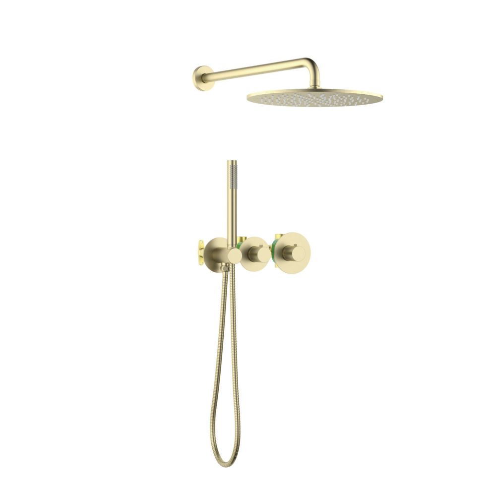 Встраиваемый блок управления душевой системой (латунный) - 1 шт. Термостатический картридж - 1 шт. Дивертор - 1 шт. Декоративная крышка картриджа - 1 шт. Гайка - 1 шт. Декоративные гильзы - 2 шт. Декоративные накладки - 3 шт. Ручка управления термостатом - 1 шт. Ручка дивертора - 1 шт. Соединительная трубка для подключения ручного душа - 1 шт. Держатель ручной лейки с подключением душа (латунный) - 1 шт. Ручная лейка (латунная) - 1 шт. Шланг душа 1,5 м - 1 шт. Держатель тропического душа (латунный) - 1 шт. Тропический душ (пластик) - 1 шт. Инструкция - 1 шт. |