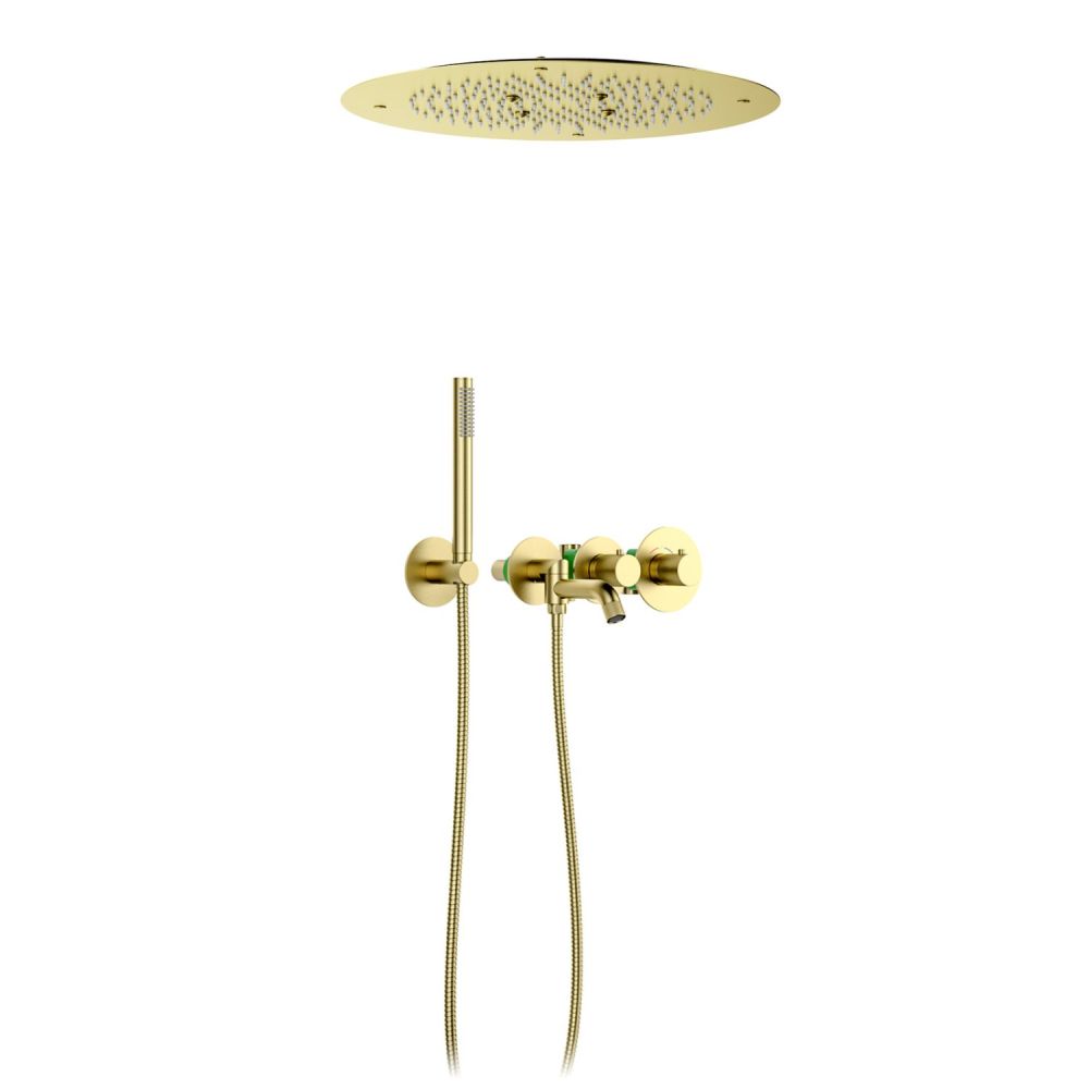 Встраиваемый блок управления душевой системой (латунный) - 1 шт. Термостатический картридж - 1 шт. Дивертор - 1 шт. Декоративная крышка картриджа - 1 шт. Гайка - 1 шт. Декоративные гильзы - 2 шт. Декоративные накладки - 3 шт. Ручка управления термостатом - 1 шт. Ручка дивертора - 1 шт. Соединительная трубка для подключения ручного душа - 1 шт. Держатель ручной лейки с подключением душа (латунный) - 1 шт. Ручная лейка (латунная) - 1 шт. Шланг душа 1,5 м - 1 шт. Держатель тропического душа (латунный) - 1 шт. Тропический душ (латунь) - 1 шт. Инструкция - 1 шт. |