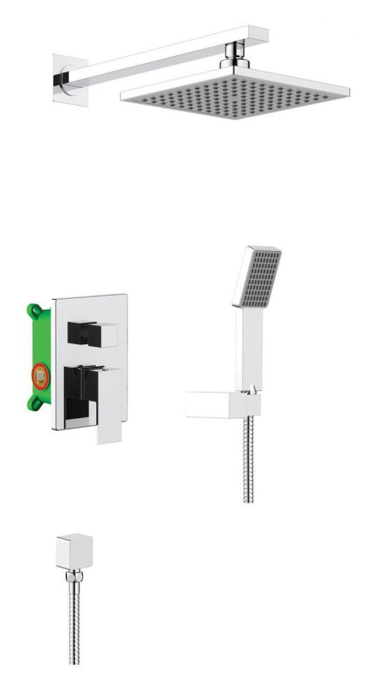 Смеситель скрытого монтажа с монтажной коробкой - 1 шт.Штанга тропического душа - 1 шт.Тропический душ (пластик) - 1 шт.Ручная лейка (пластик) - 1 шт.Держатель ручной лейки (пластик) - 1 шт.Декоративная накладка смесителя - 1 шт.Ручка дивертора - 1 шт.Ручка управления смесителем - 1 шт.Шланг душа 1,5 м - 1 шт.Отвод из стены - 1 шт.Инструкция - 1 шт. |