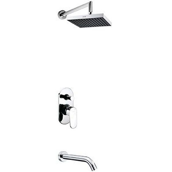 В комплекте поставки: верхний душ, кронштейн для верхнего душа, излив, смеситель (внешняя и внутренняя части).