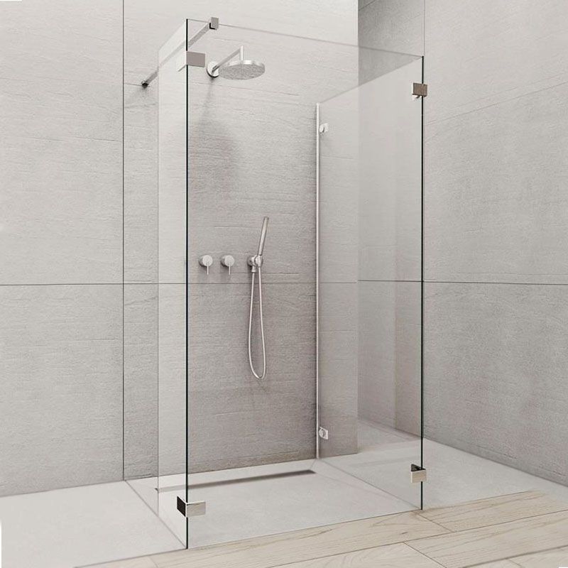 - фронтальная часть душевой перегородки: неподвижное стекло с фурнитурой;