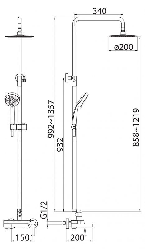 Оснащение: эксцентрики, дивертор, душевой шланг, душевая лейка, верхний душ, смеситель