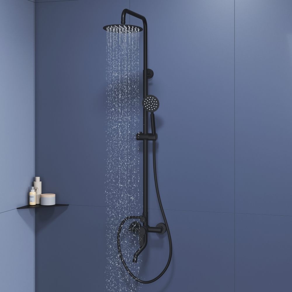Стационарный душ-стойка RGW SP-24B из нержавеющей стали, окрашенная в черный цвет, представляет собой собранную систему водяного оборудования навесного типа монтажа к стене. Душевая штанга с телескопическим механизмом обеспечивает удобную регулировку по высоте. На этой стойке размещены верхний душ, ручной душ в виде лейки на гибком шланге и смеситель ручного управления с изливом.