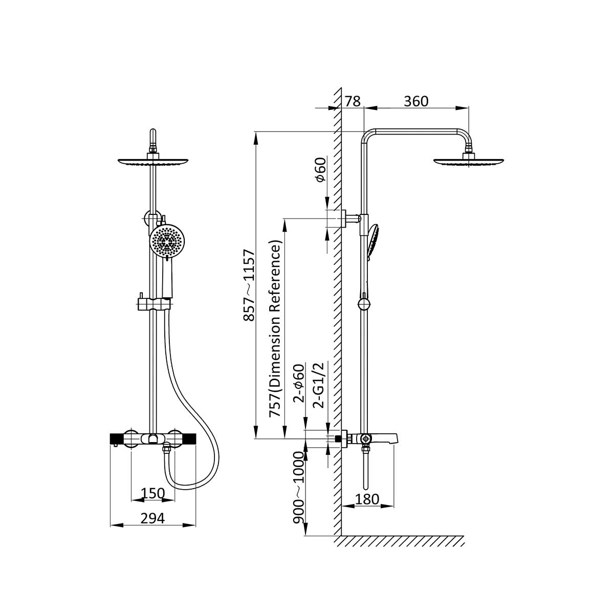 Верхний душ, ручной душ, смеситель со встраиваемой частью |