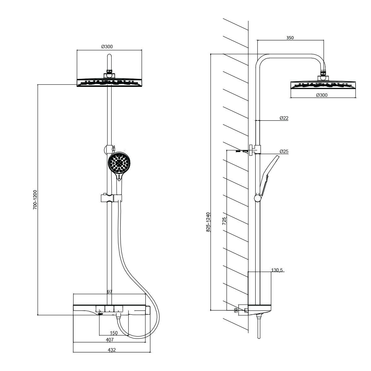 Верхний душ, ручной душ, смеситель со встраиваемой частью |