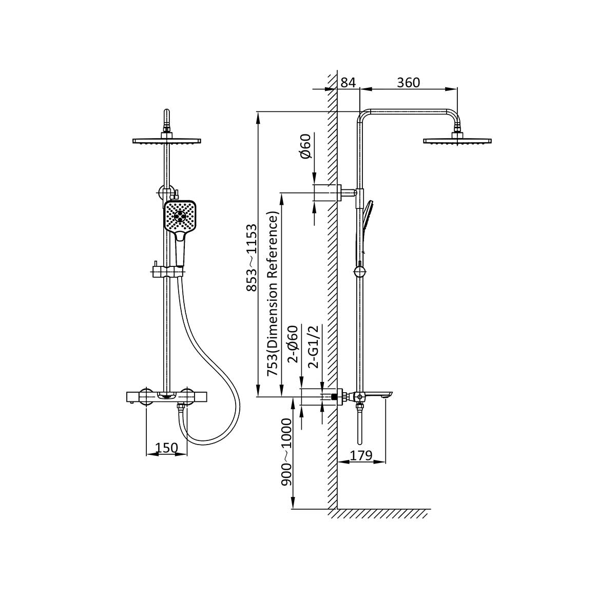 Верхний душ, ручной душ, смеситель со встраиваемой частью |