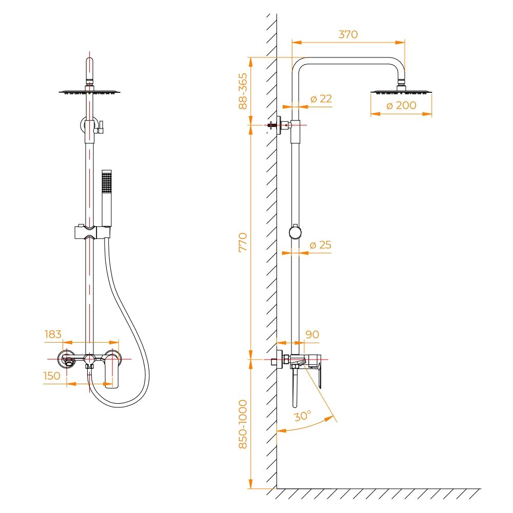 Головной душ выполнен из нержавеющей стали AISI 304 оснащён со шарнирным креплением, что позволяет выбрать необходимый угол направления воды;