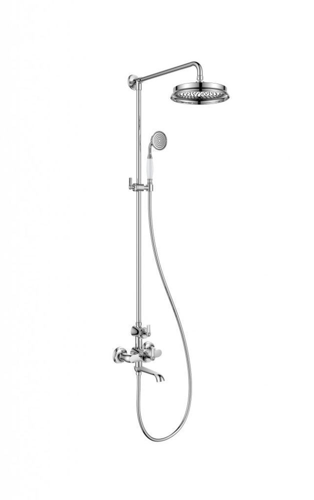 Оснащение: душевая лейка латунная, верхний душ латунный, душевой шланг 150 см PVC, смеситель с поворотным изливом и дивертором