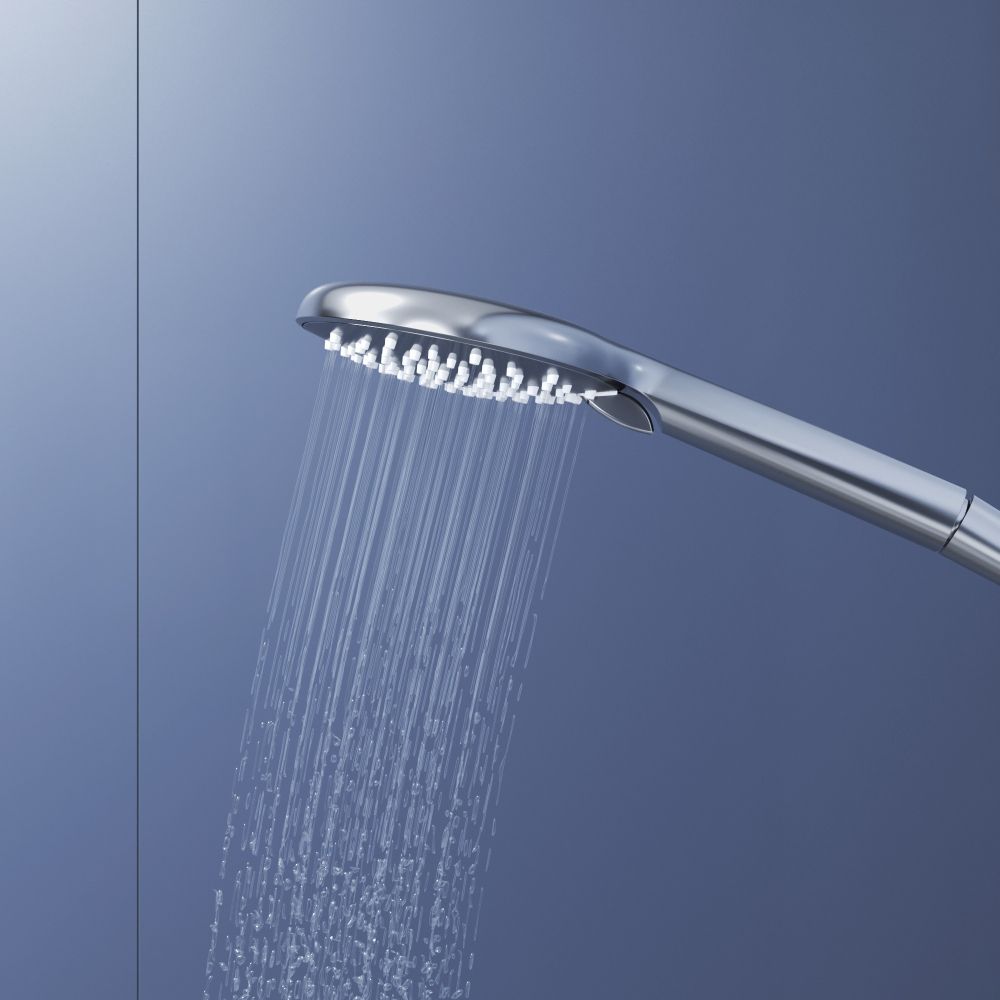 Ручной душ с тремя режимами — обеспечивает точечное направление потока воды, оснащён держателем с регулировкой наклона и высоты. Подходит также для мытья домашних животных.