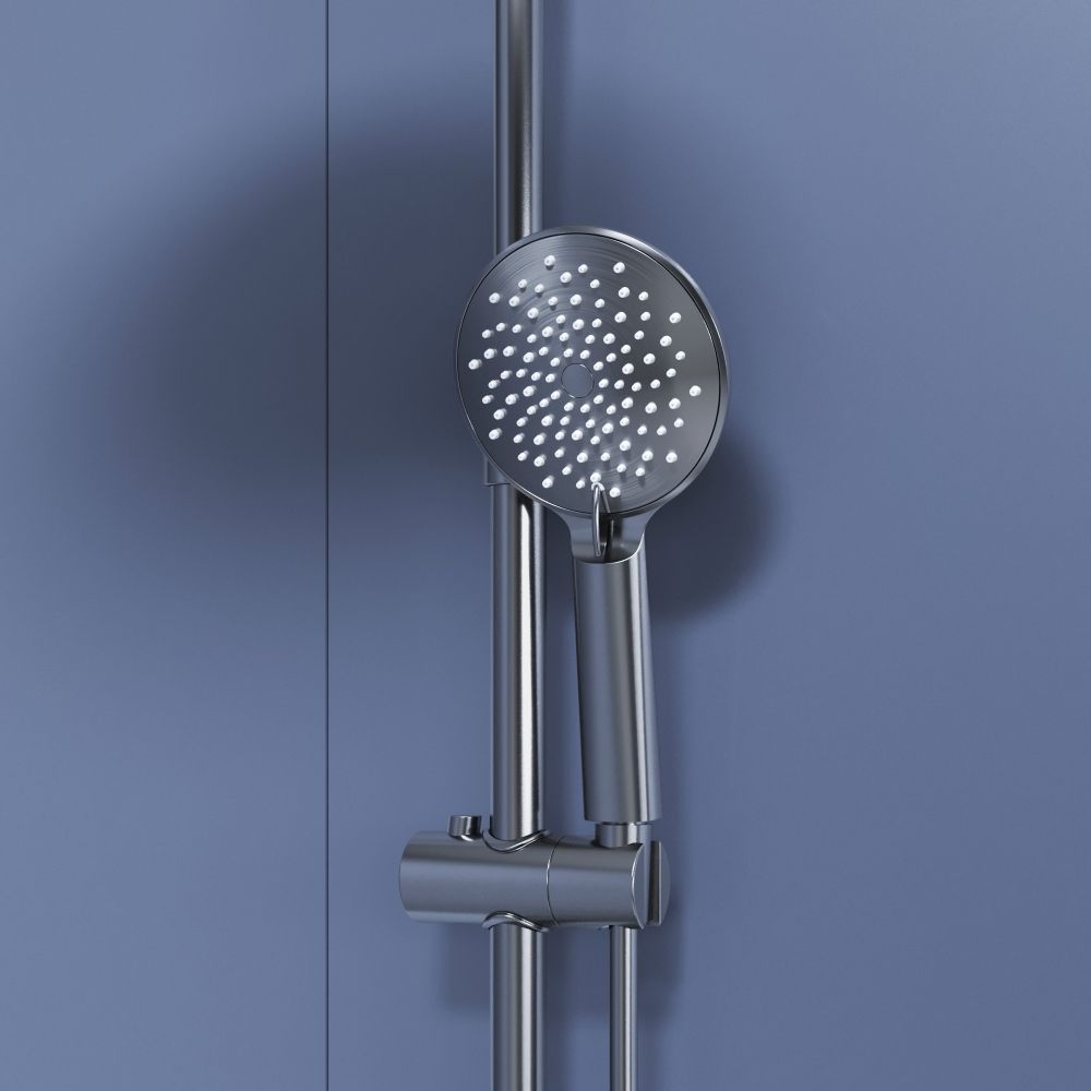 Штанга с функцией регулировки высоты головного душа в диапазоне от 889,5 до 1139,5 мм — удобно для пользователей с любым ростом.