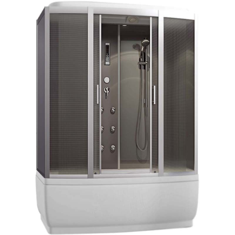 Стеклянный душевой бокс Arcus AS-126 85x170 с двумя раздвижными дверьми, с высоким поддоном, с крышей, с гидромассажем. Отлитое сиденье в поддоне.