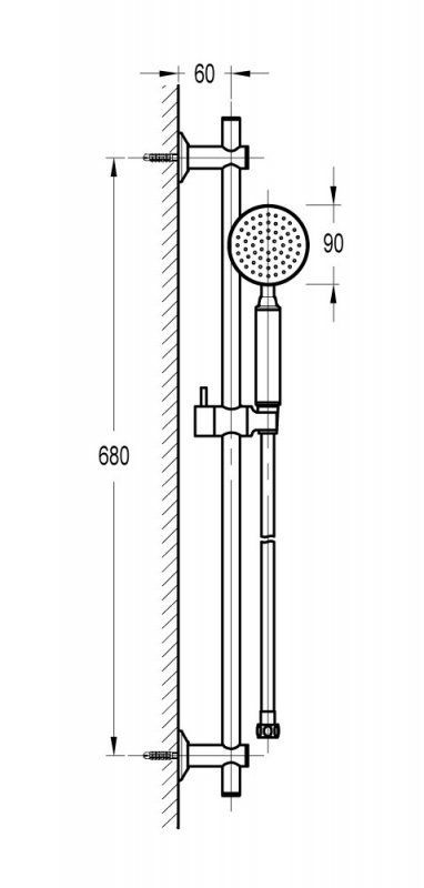Оснащение: Штанга, регулируемый держатель ручного душа, душевой шланг PVC 150 см, ручной душ