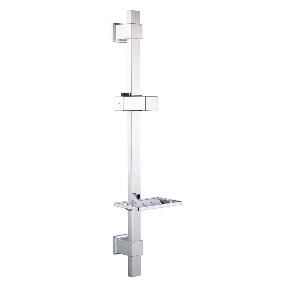 штанга душевая металлическая квадратичная с регулируемым держателем для лейки и мыльницей, L=600 мм