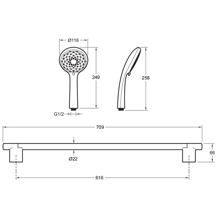 Штанга, шланг и ручной душ |