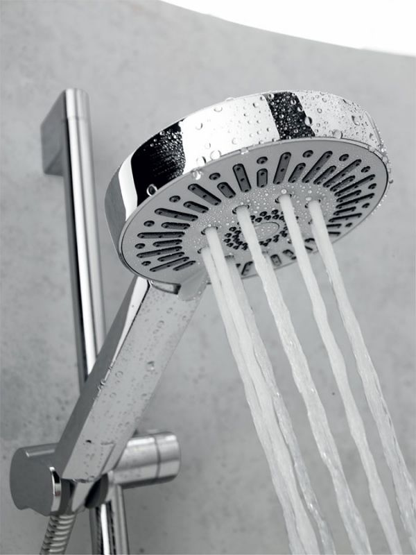 - Ручной душ с 3 режимами струи (бодрящая, мягкая, массажная) и форсунками с защитой от известковых отложений.