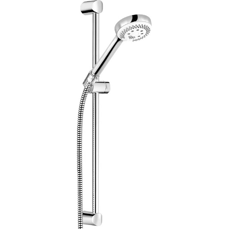 В комплекте поставки: ручная душевая лейка, держатель, шланг, настенная штанга, комплект креплений.