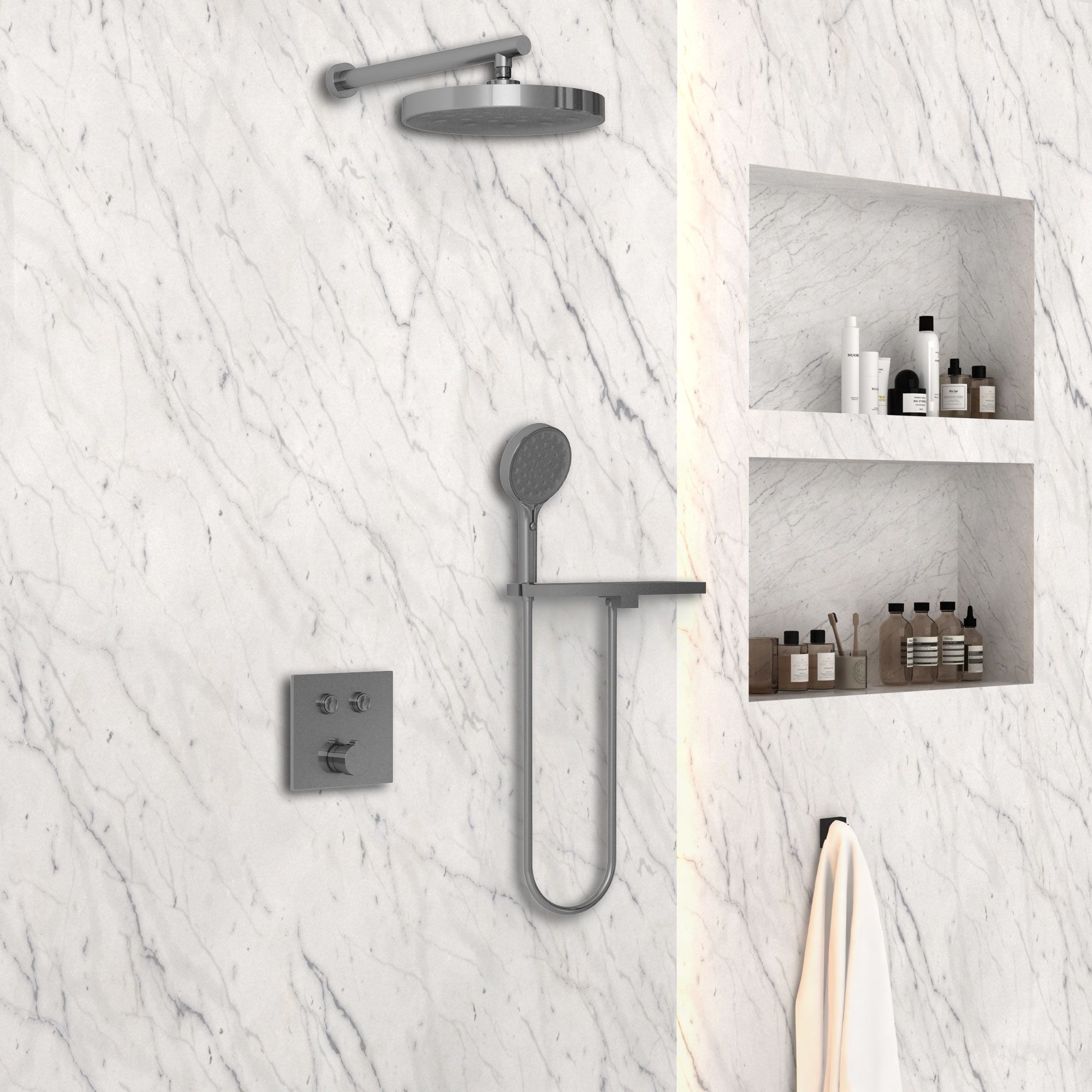 Верхний душ, полка с изливом и держателем ручного душа, ручной душ, смеситель со встраиваемой частью |