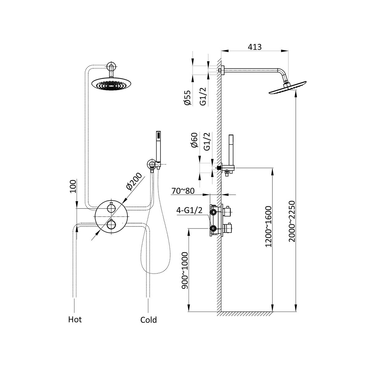 Верхний душ, ручной душ, смеситель со встраиваемой частью |