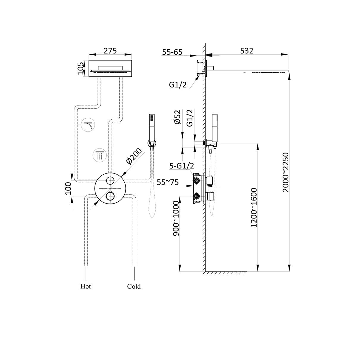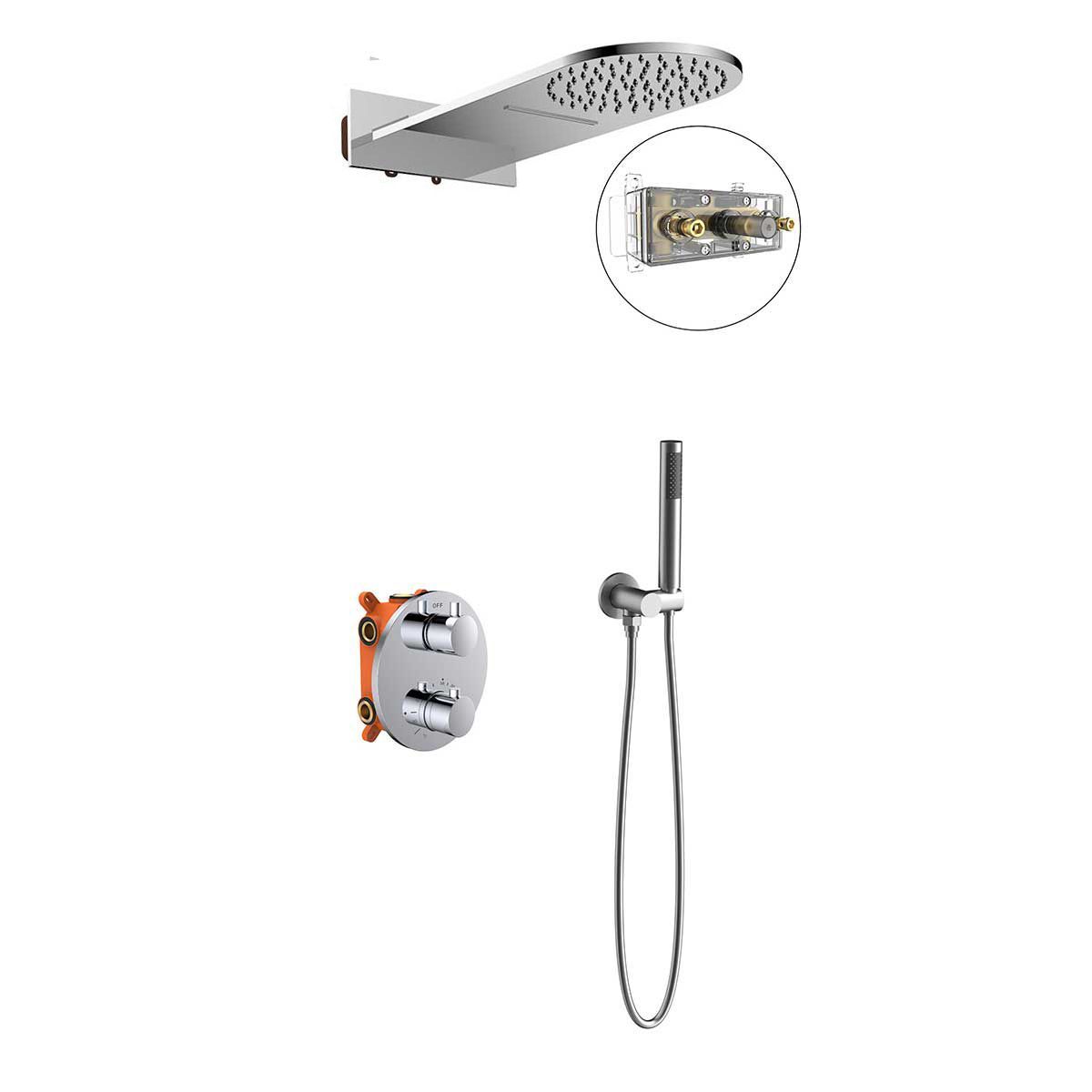 Верхний душ, ручной душ, смеситель со встраиваемой частью |