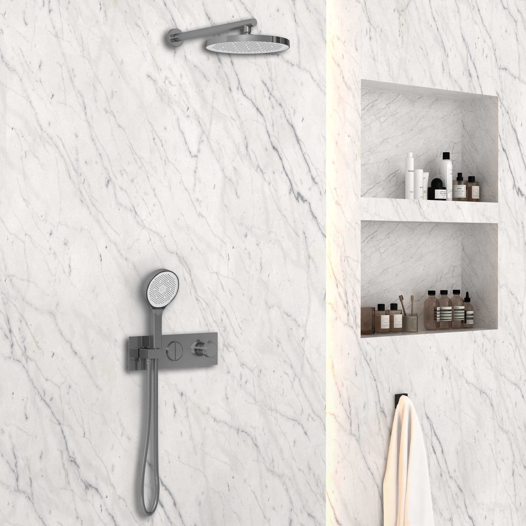 Верхний душ, ручной душ, смеситель со встраиваемой частью |