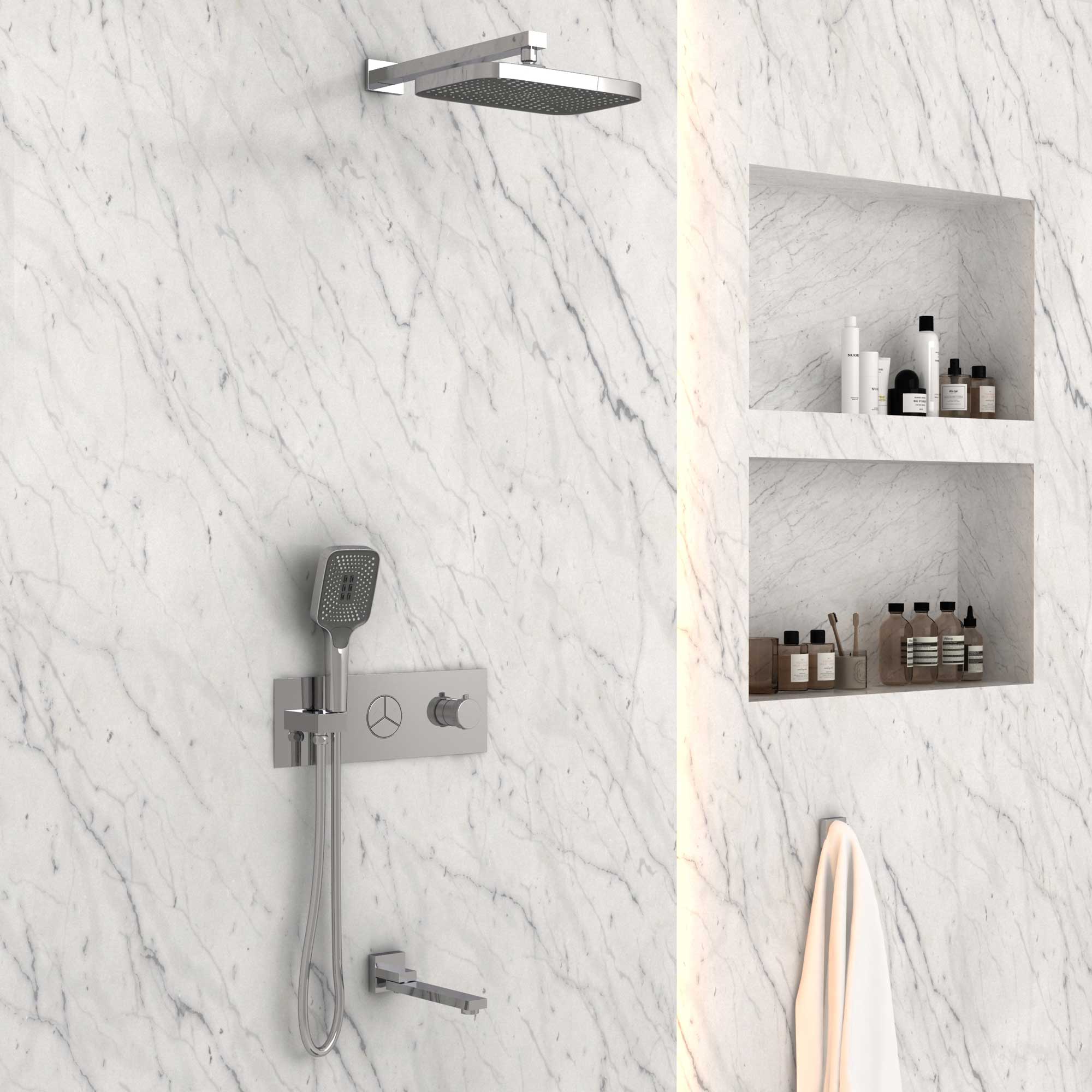 Верхний душ, ручной душ, встраиваемый смеситель, излив |