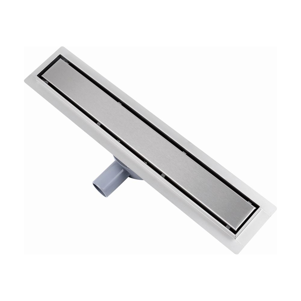 водоотводящий желоб из нержавеющей стали; декоративная панель; заглушка монтажная; поворотный сифон DN50, выход вбок; комплект регулируемых опор; улавливатель волос и мусора; сервисный ключ |