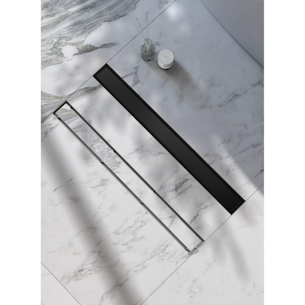 водоотводящий желоб из нержавеющей стали; декоративная панель; заглушка монтажная; поворотный сифон DN50, выход вбок; комплект регулируемых опор; улавливатель волос и мусора; сервисный ключ |