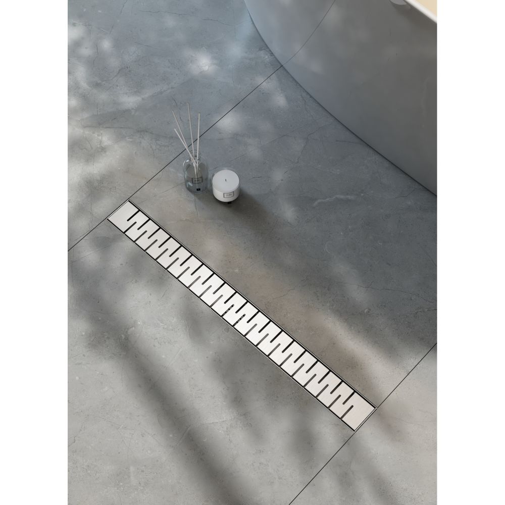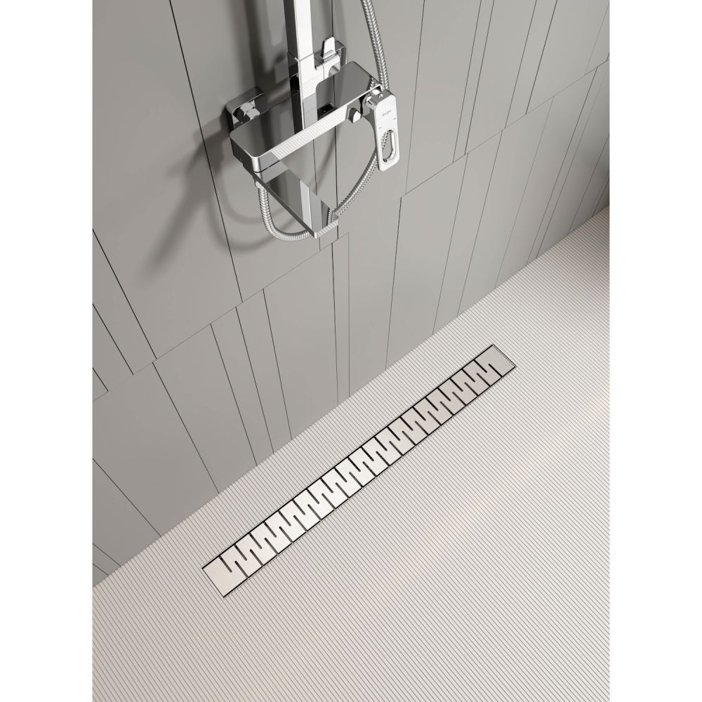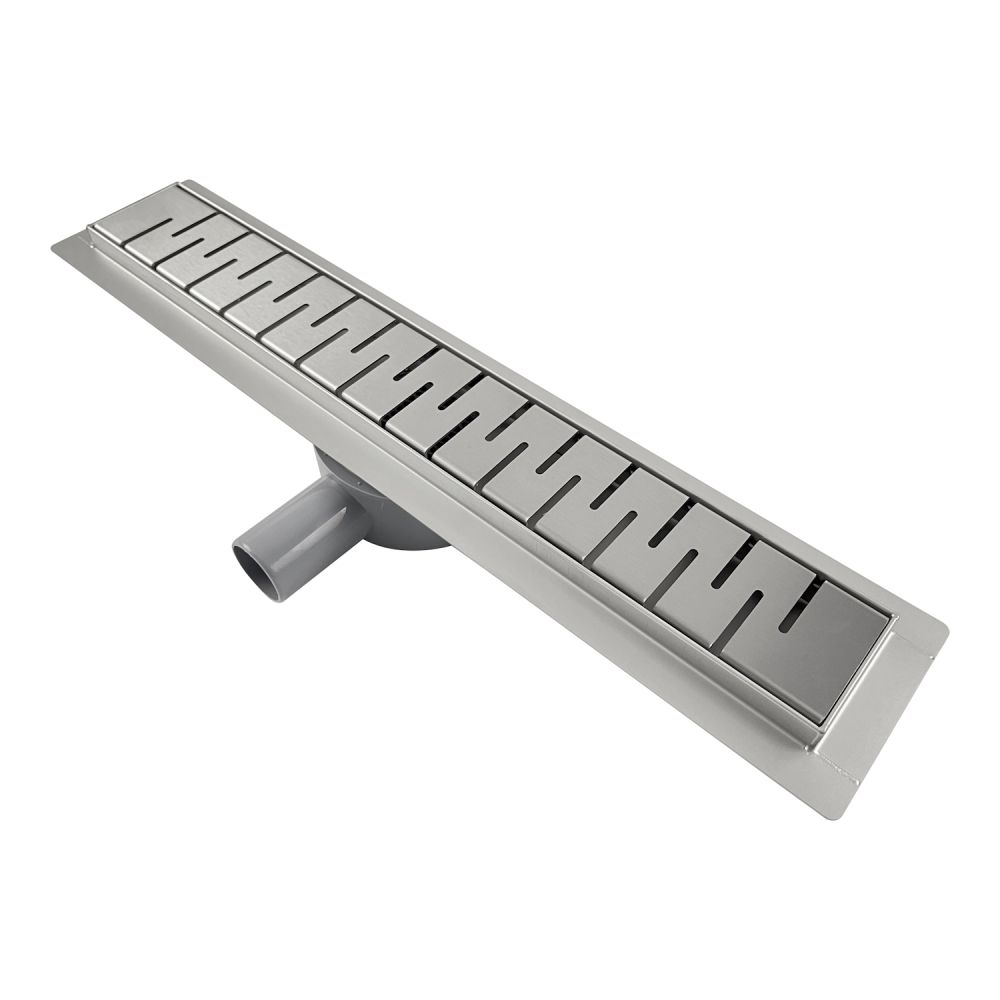 водоотводящий желоб из нержавеющей стали; декоративная панель; заглушка монтажная; поворотный сифон DN50, выход вбок; комплект регулируемых опор; улавливатель волос и мусора; сервисный ключ |