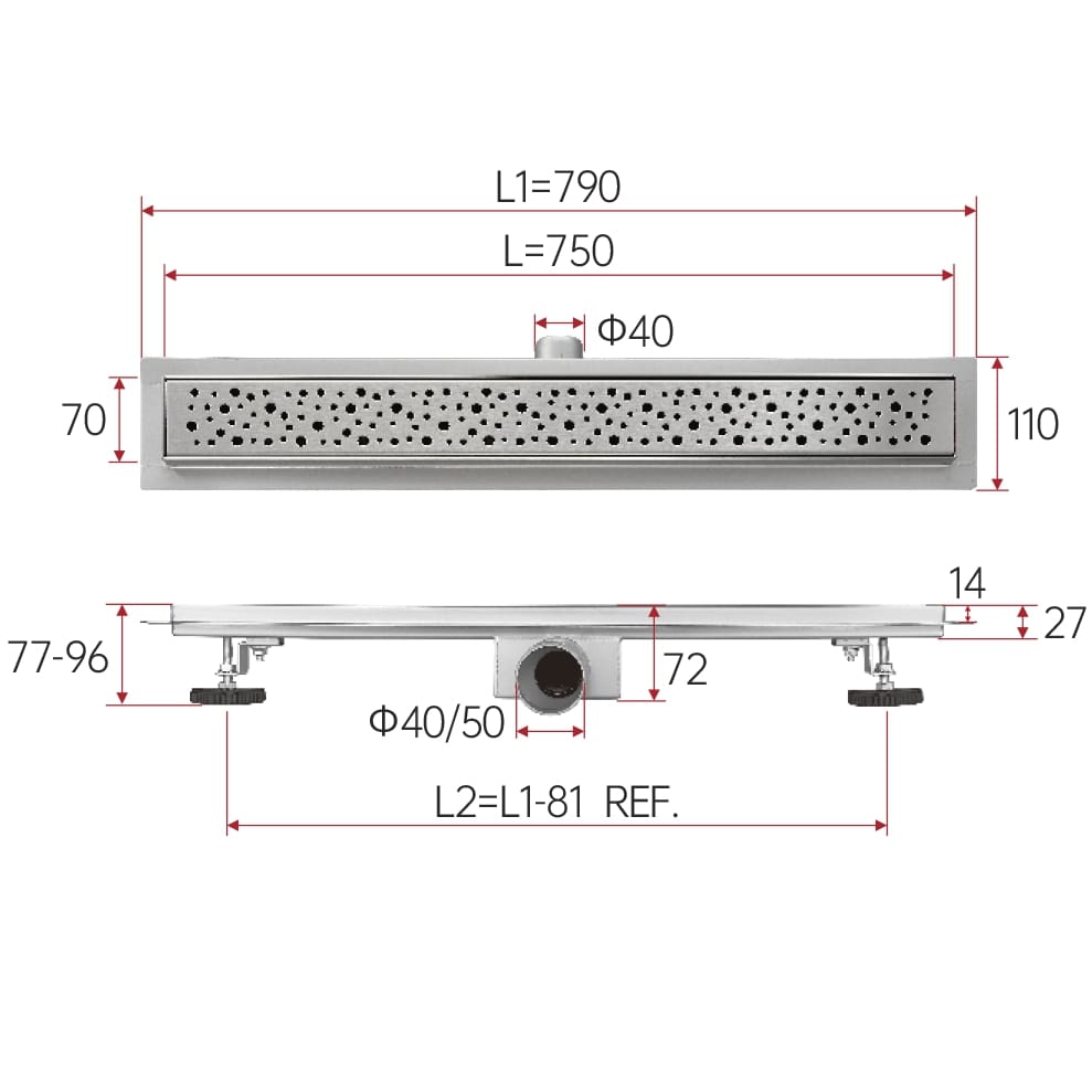 корпус душевого лотка, решетка, сифон, регулируемые ножки |