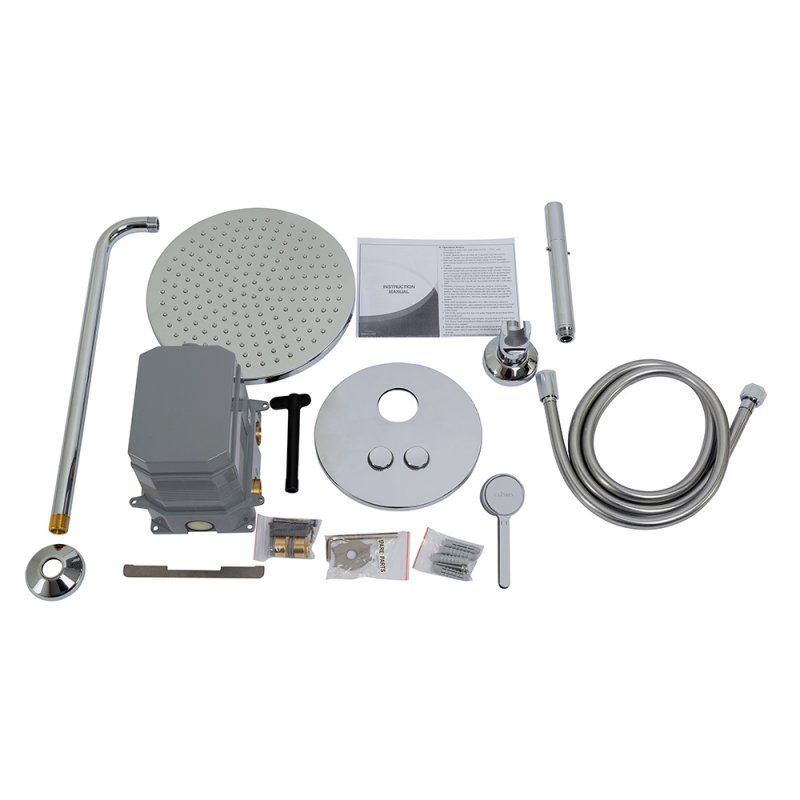 Оснащение: встраиваемый смеситель с кнопочным управлением, верхний душ диаметр 25 см, ручной душ со шлангом, штуцером и держателем
