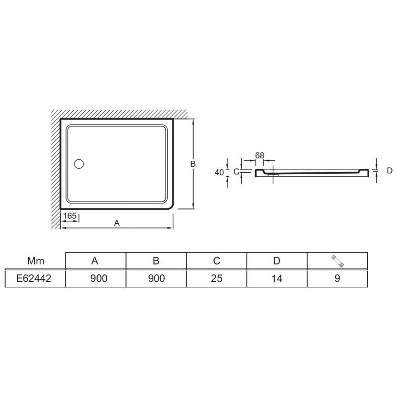 - Размеры (ДхШхВ): 90x90х4 см.