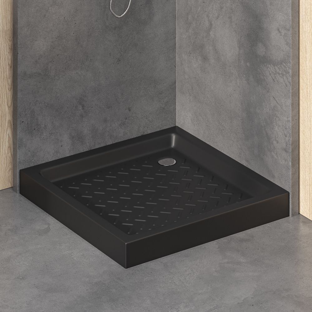 Преимущества душевого поддона из санфарфора - высокая степень прочности и керамика чёрного матового цвета будет сохранять насыщенность цвета на протяжении всего срока эксплуатации.