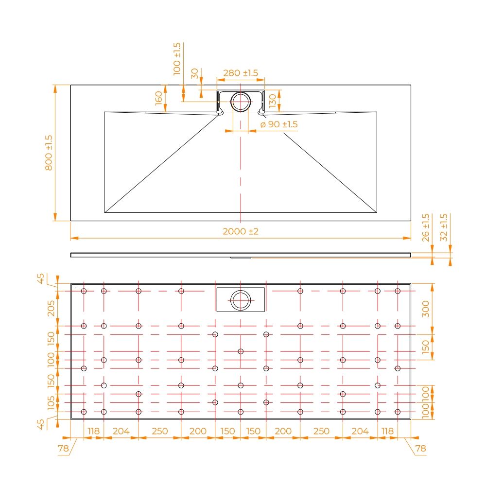 Длина и ширина: 800х2000 мм и 900х2000 мм — поддон имеет большие размеры и подойдет для просторных ванных комнат.
