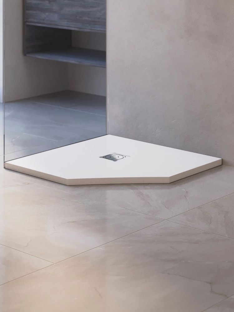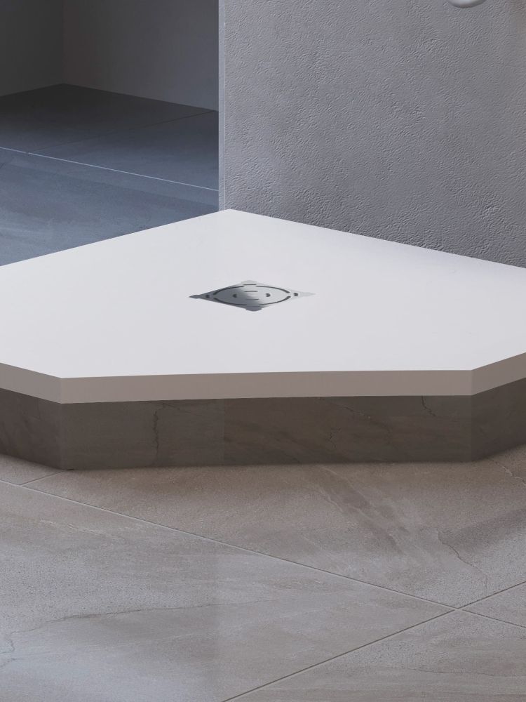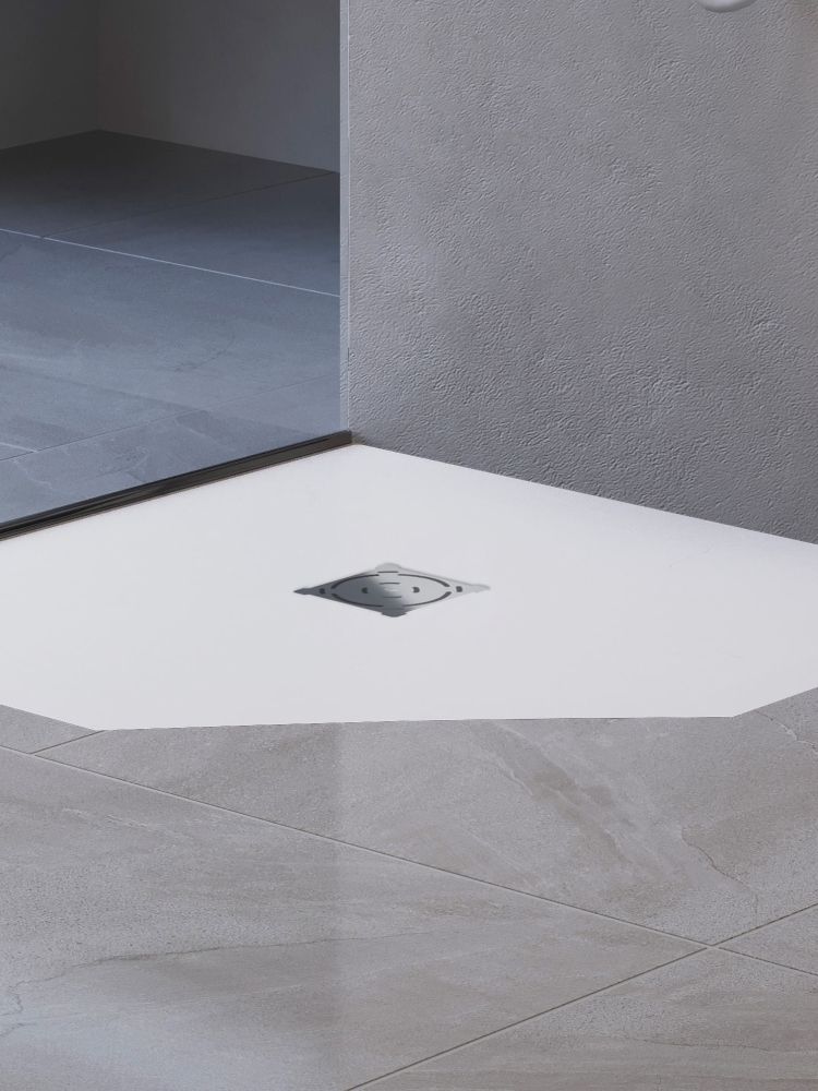Новый поддон — это самостоятельный аксессуар вашей душевой. Универсальный цвет, откликающийся на уровень освещения, и текстура “под камень” идеально сочетаются с интерьерами от смелых лофт и хайтек до романтичного прованса, а решетка из нержавеющей стали, защищающая слив, создаст безупречный аккомпанемент душевым системам, а таком же оттенке.
