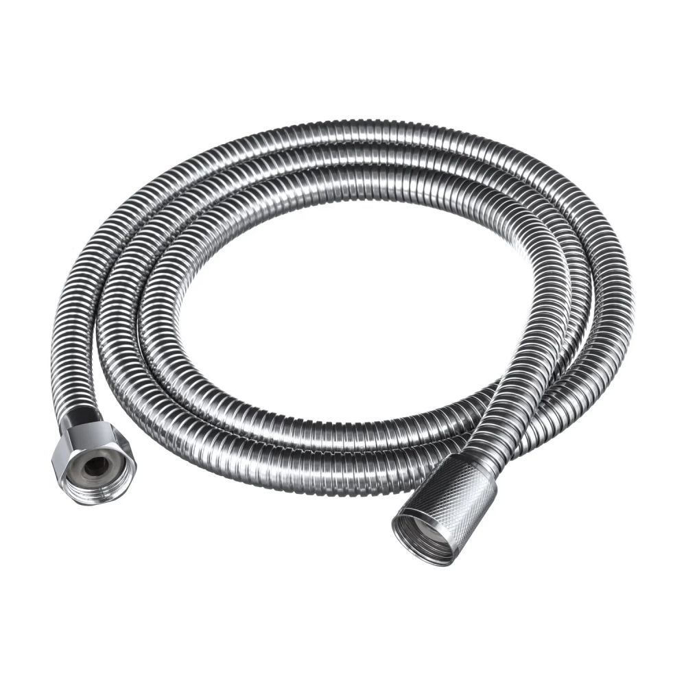 Основа шланга выполнена из EPDM резины, а сверху покрыта стальной обмоткой из нержавеющей стали тип - двойной замок. Обмотка защищает внутреннюю часть от агрессивного действия высоких температур, а также от механических повреждений. На краях расположены гайки для подсоединения к смесителю и лейке диаметром 1/2", длина 150 см.