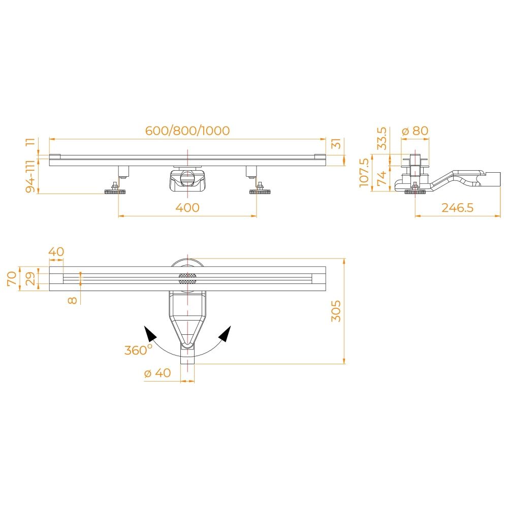 Дренажная система встраивается в пол или в подиум душевого пространства. В данном изделии поворотный сифон 360 градусов разворот. Удобен для подвода канализационной трубы в любой стороны. Дренажное оборудование сантехническое оборудование требует заранее запланировать в проекте месторасположения.