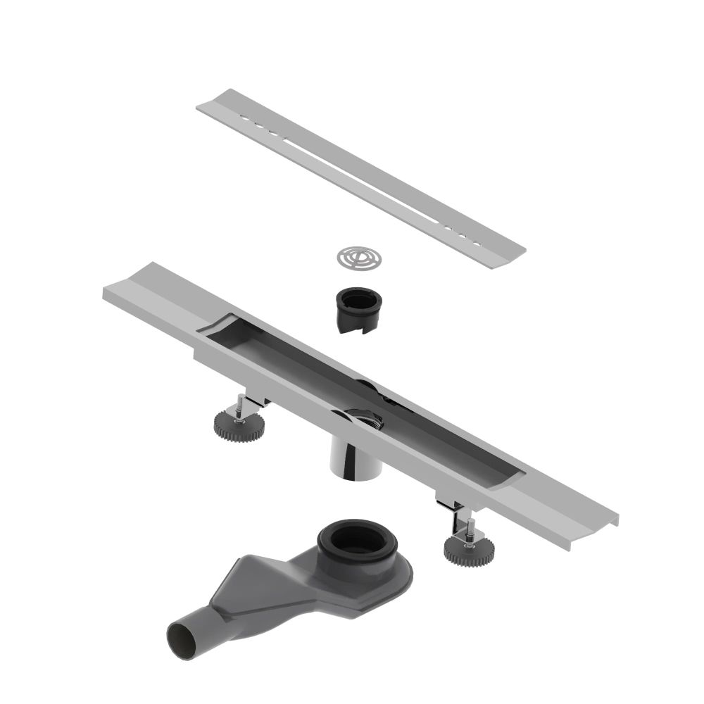 Душевой лоток комплектуется сифоном с выходом трубы диаметром на 50 мм для подключения к канализационной трубе, в данной системе переходников не требуется. Для эффективного стока воды нужно предусмотреть уклон облицовочной плитки в сторону сливного жёлоба и небольшой уклон канализационной трубы от соединения с сифоном до входа в стену. На этапе монтажа обязательно до укладки облицовочной плитки уложите вокруг лотка гидроизоляционную ленту, которым комплектуется трап. Облицовочная плитка укладывается вровень с бортами лотка.