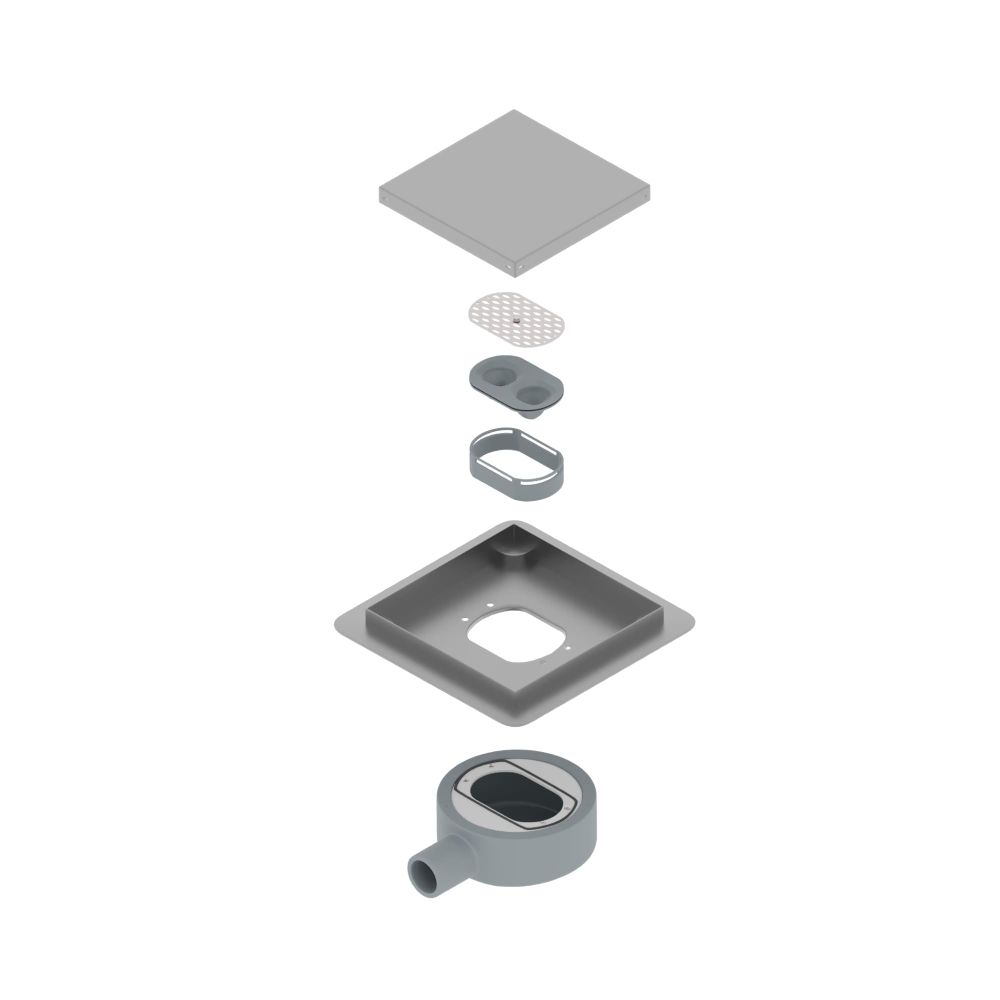 Лоток выполнен из стали толщиной 2 мм, собирает стекающую воду и за счёт технического уклона отводит её в сетку-фильтр, которая задерживает волосы и мелкий мусор.