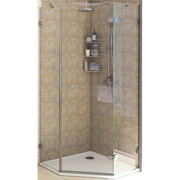 Полотно двери изготовлено из прозрачного закаленного и безопасного стекла толщиной 6 мм, а стенки - 8 мм.