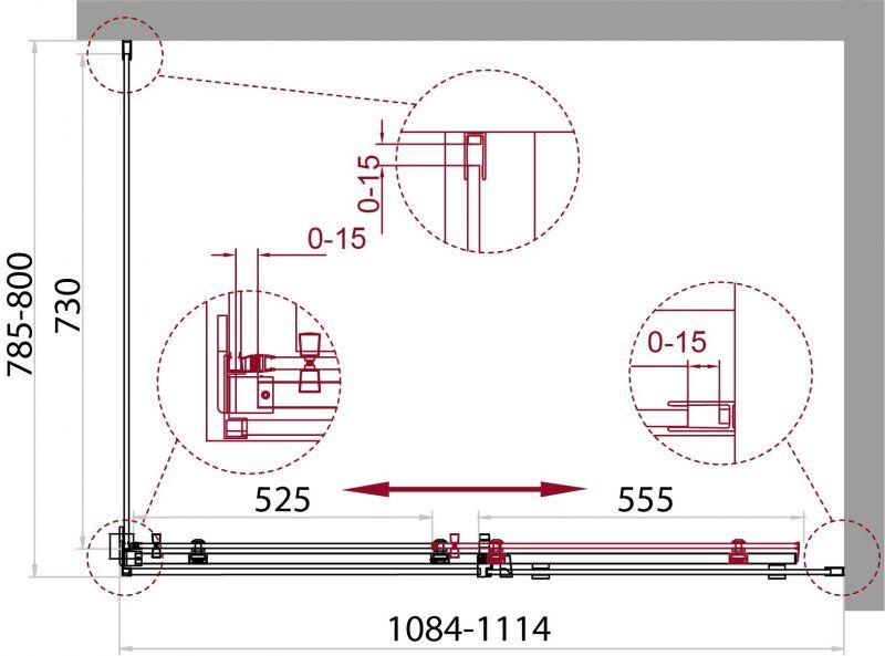 Регулировка ширины: предусмотрена за счет боковых профилей