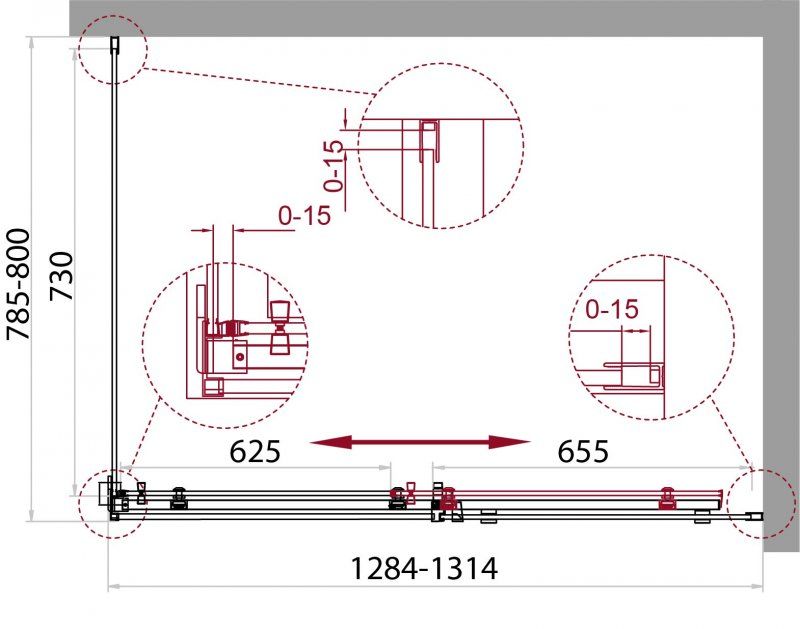 Регулировка ширины: предусмотрена за счет боковых профилей