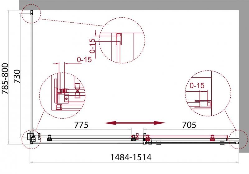 Регулировка ширины: предусмотрена за счет боковых профилей