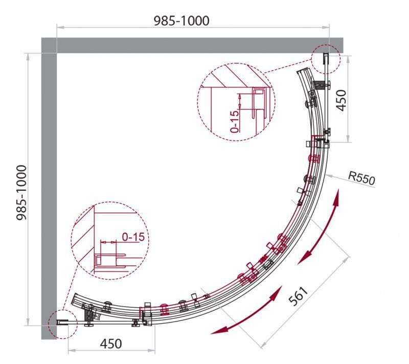 Регулировка ширины: предусмотрена за счет боковых профилей
